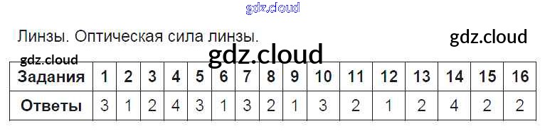 Ответ на задание 6. Оптическая сила линзы. Линзы Тесты Физика за 8 (восьмой) класс Чеботарева УМК 2017 ФГОС онлайн и без номера телефона.