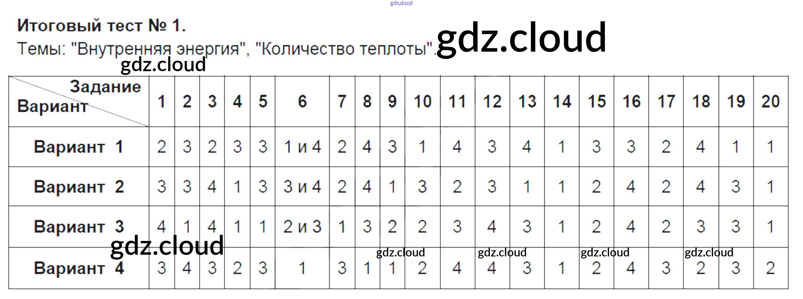 Часть 1 Ответы к теме: Тепловые явления по Физике 8 класс Тесты Чеботарева УМК Экзамен