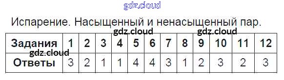 Ответ на задание 3. Испарение. Насыщенный и ненасыщенный пар Тесты Физика за 8 (восьмой) класс Чеботарева УМК 2017