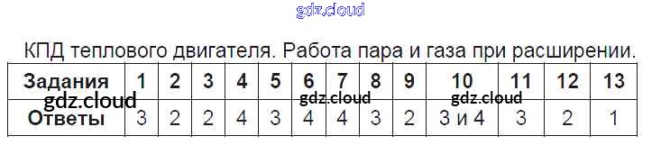 Ответ на задание 7. КПД теплового двигателя. Работа пара и газа при расширении Тесты Физика за 8 (восьмой) класс Чеботарева УМК 2017