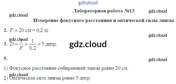 Ответ на задание ЛР №13. Измерение фокусного расстояния и оптической силы линзы Учебник Физика за 8 (восьмой) класс Громов, Родина, Белага 2018