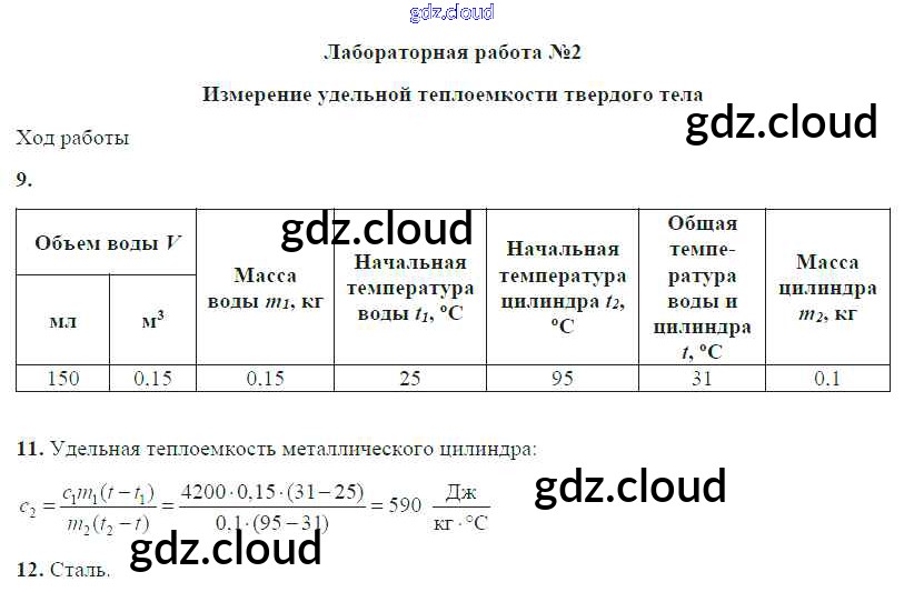Ответ на задание ЛР №2. Измерение удельной теплоемкости твердого тела Учебник Физика за 8 (восьмой) класс Громов, Родина, Белага 2018