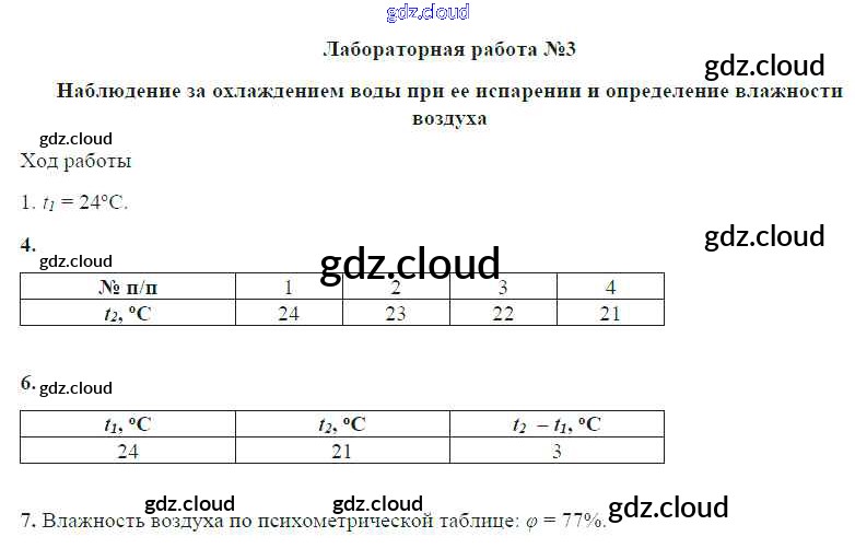 Ответ на задание ЛР №3. Наблюдение за охлаждением воды при ее испарении и определение влажности воздуха Учебник Физика за 8 (восьмой) класс Громов, Родина, Белага 2018