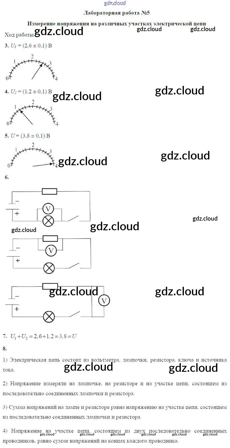 Ответ на задание ЛР №5. Измерение напряжения на различных участках электрической цепи Учебник Физика за 8 (восьмой) класс Громов, Родина, Белага 2018