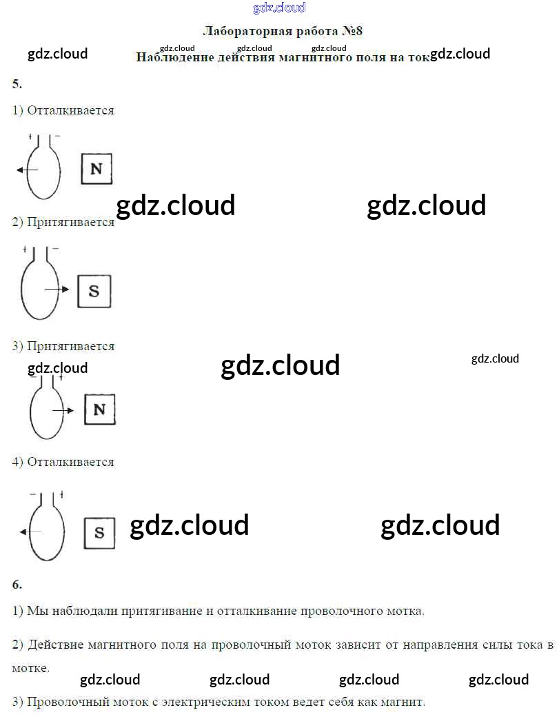 Ответ на задание ЛР №8. Наблюдение действия магнитного поля на ток Учебник Физика за 8 (восьмой) класс Громов, Родина, Белага 2018