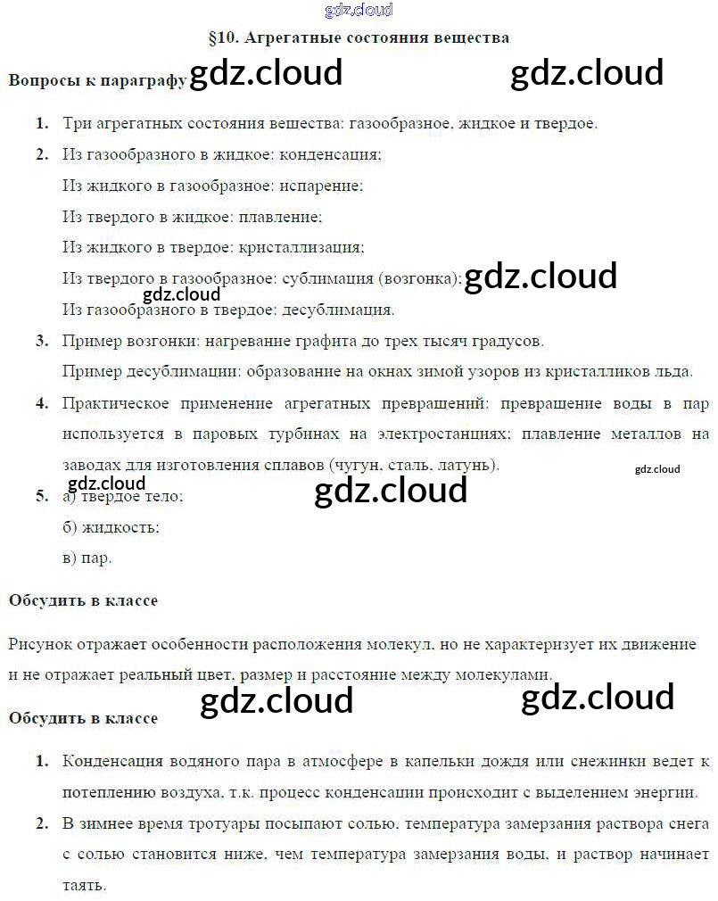 Ответ на задание § 10. Агрегатные состояния вещества Учебник Физика за 8 (восьмой) класс Громов, Родина, Белага 2018 ФГОС онлайн и без номера телефона.