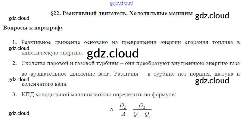Ответ на задание § 22. Реактивный двигатель. Холодильные машины Учебник Физика за 8 (восьмой) класс Громов, Родина, Белага 2018