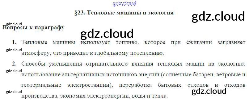 Ответ на задание § 23. Тепловые машины и экология Учебник Физика за 8 (восьмой) класс Громов, Родина, Белага 2018 ФГОС онлайн и без номера телефона.