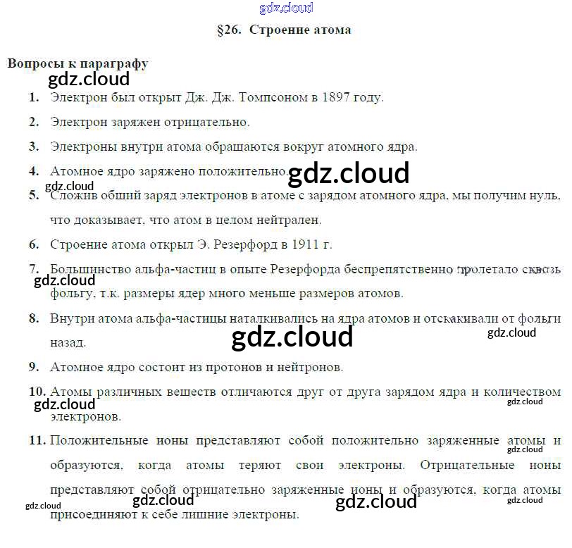 Ответ на задание § 26. Строение атома Учебник Физика за 8 (восьмой) класс Громов, Родина, Белага 2018 ФГОС онлайн и без номера телефона.