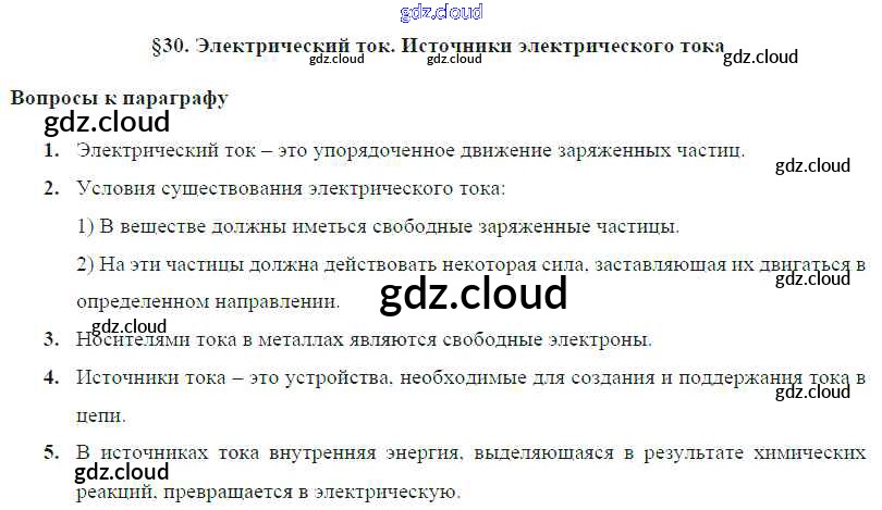 Ответ на задание § 30. Электрический ток. Источники электрического тока Учебник Физика за 8 (восьмой) класс Громов, Родина, Белага 2018