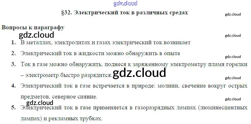 Ответ на задание § 32. Электрический ток в различных средах Учебник Физика за 8 (восьмой) класс Громов, Родина, Белага 2018