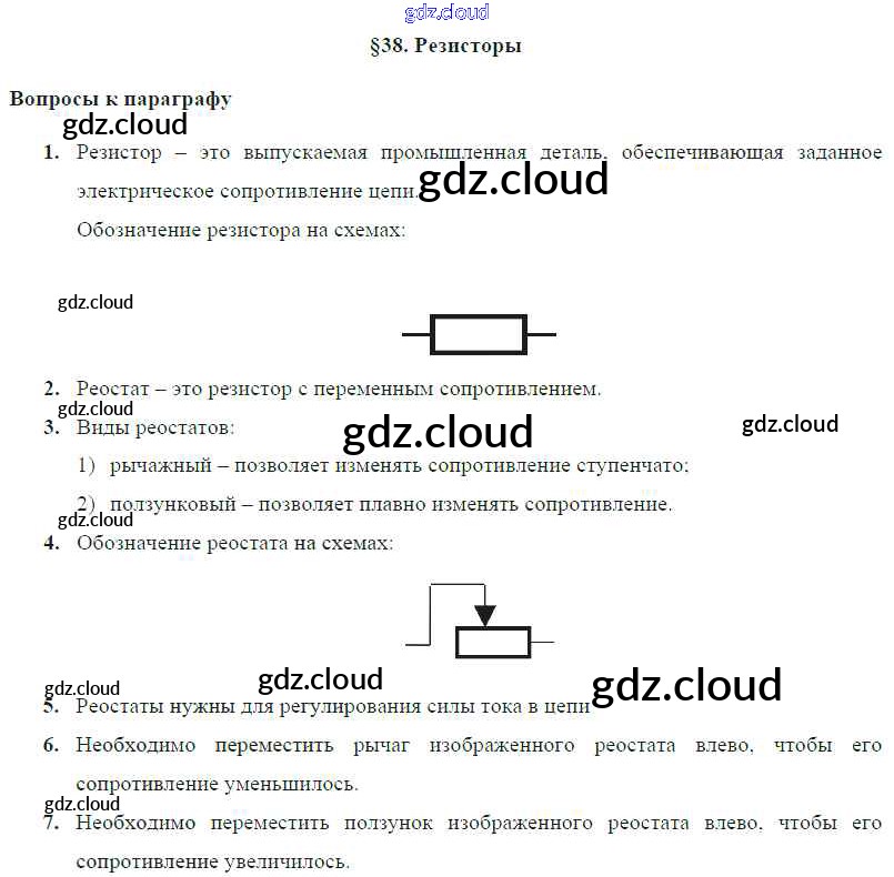 Ответ на задание § 38. Резисторы Учебник Физика за 8 (восьмой) класс Громов, Родина, Белага 2018 ФГОС онлайн и без номера телефона.