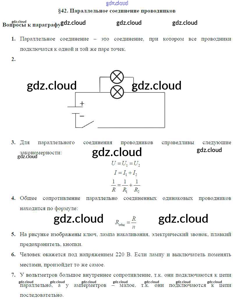 Ответ на задание § 42. Параллельное соединение проводников Учебник Физика за 8 (восьмой) класс Громов, Родина, Белага 2018 ФГОС онлайн и без номера телефона.