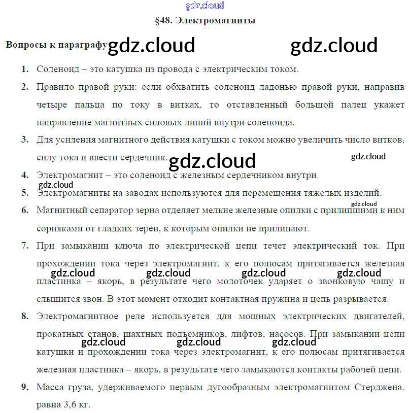 Ответ на задание § 48. Электромагниты Учебник Физика за 8 (восьмой) класс Громов, Родина, Белага 2018 ФГОС онлайн и без номера телефона.