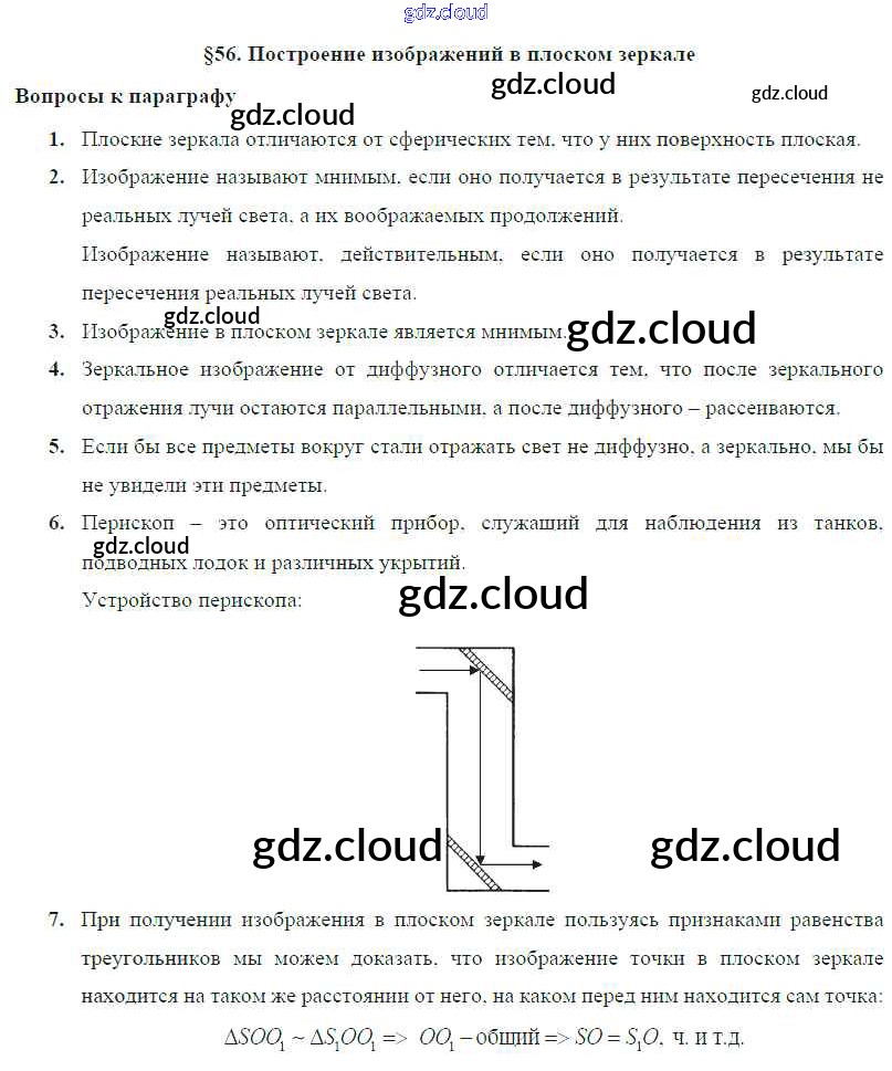 Ответ на задание § 56. Построение изображений в плоском зеркале Учебник Физика за 8 (восьмой) класс Громов, Родина, Белага 2018