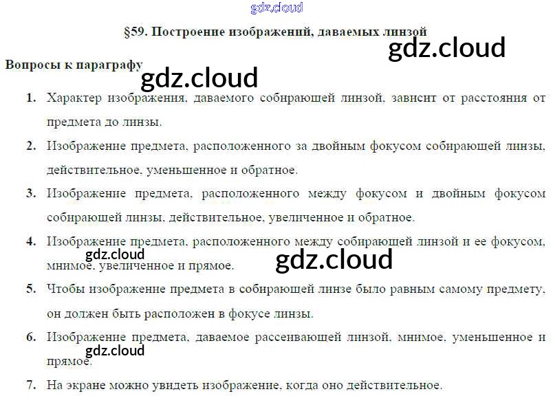 Ответ на задание § 59. Построение изображений, даваемых линзой Учебник Физика за 8 (восьмой) класс Громов, Родина, Белага 2018