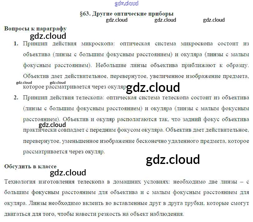 Ответ на задание § 63. Другие оптические приборы Учебник Физика за 8 (восьмой) класс Громов, Родина, Белага 2018 ФГОС онлайн и без номера телефона.