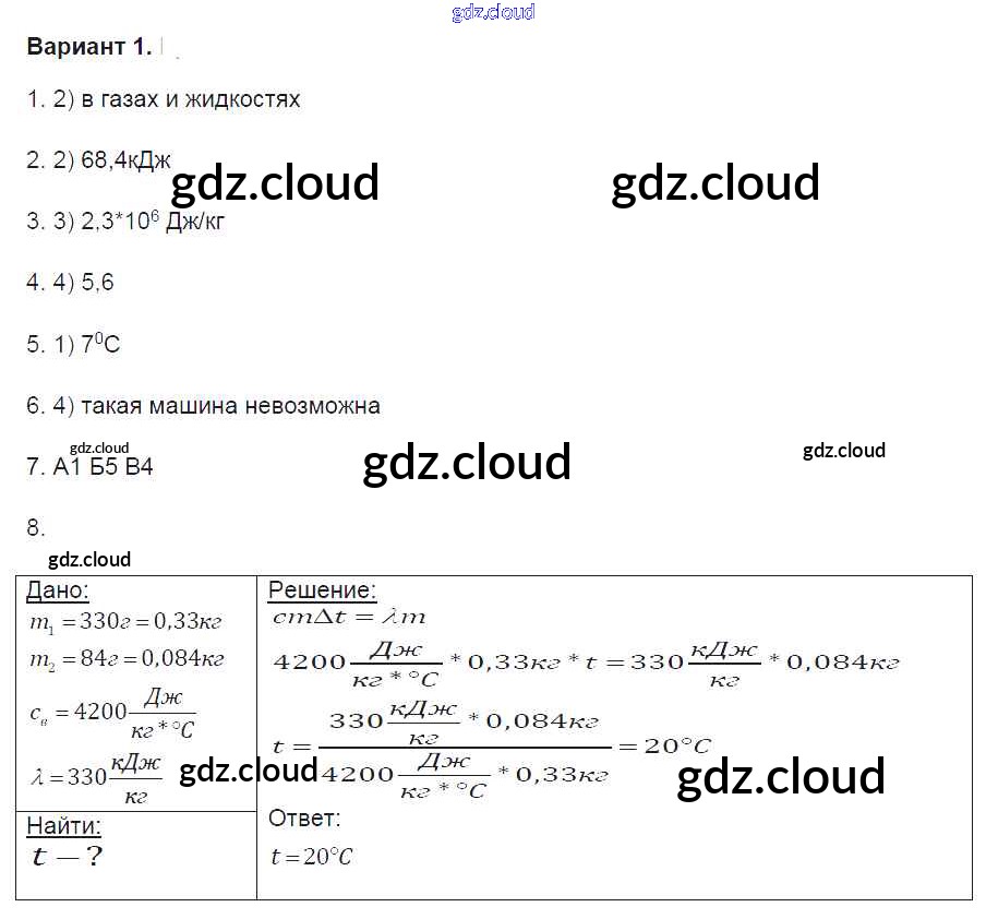 Глава 1. Тепловые явления Ответы к контрольным работам по Физике 8 класс Контрольные и самостоятельные работы Громцева УМК Экзамен