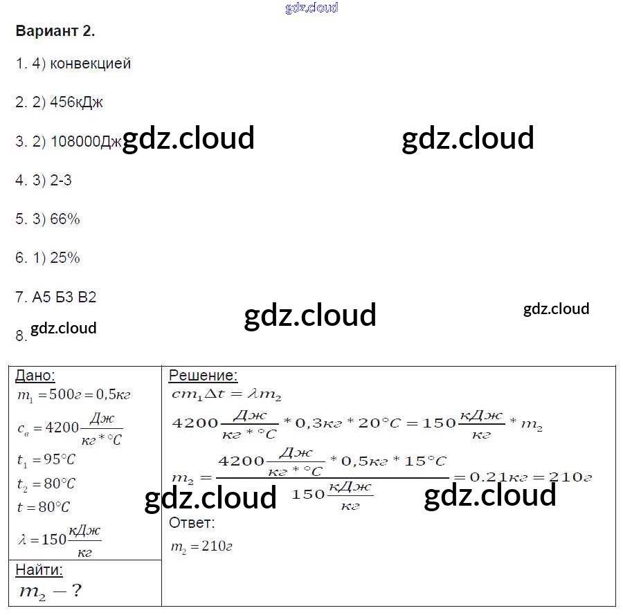Ответ на задание вариант-2 Контрольные и самостоятельные работы Физика за 8 (восьмой) класс Громцева УМК 2017
