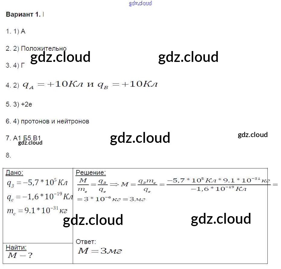 Ответ на задание вариант-1 Контрольные и самостоятельные работы Физика за 8 (восьмой) класс Громцева УМК 2017