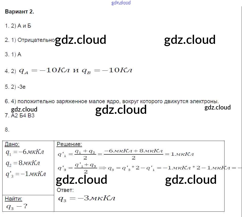 Ответ на задание вариант-2 Контрольные и самостоятельные работы Физика за 8 (восьмой) класс Громцева УМК 2017