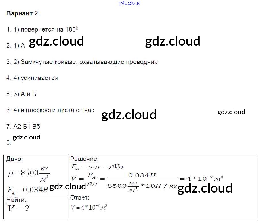 Ответ на задание вариант-2 Контрольные и самостоятельные работы Физика за 8 (восьмой) класс Громцева УМК 2017