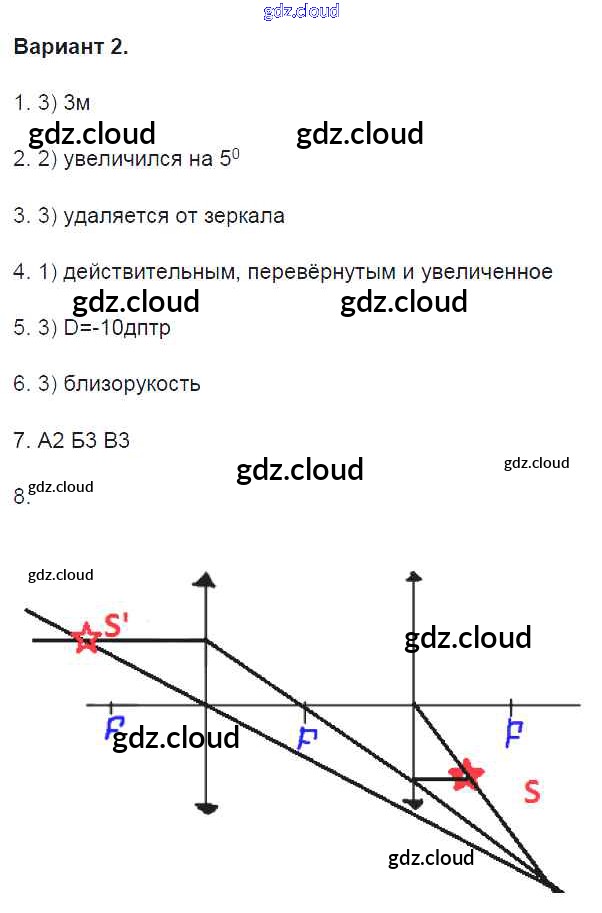 Глава 4. Световые явления Ответы к контрольным работам по Физике 8 класс Контрольные и самостоятельные работы Громцева УМК Экзамен