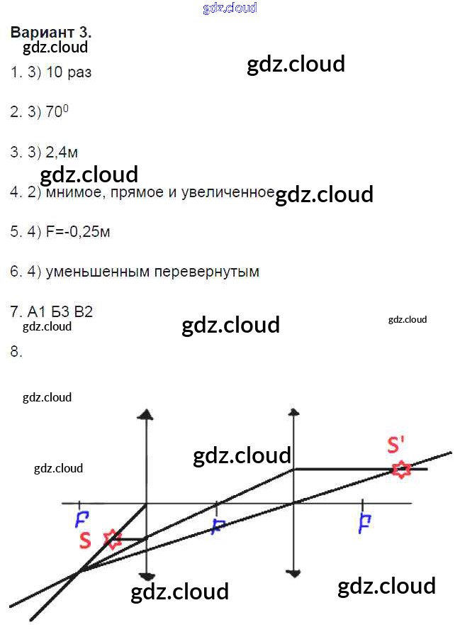 Глава 4. Световые явления Ответы к контрольным работам по Физике 8 класс Контрольные и самостоятельные работы Громцева УМК Экзамен