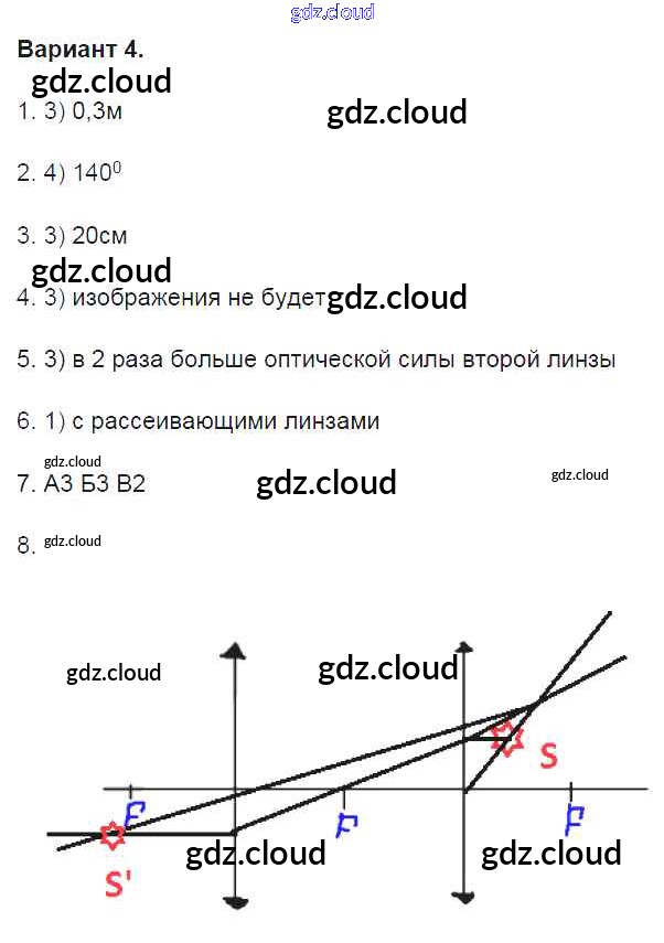 Глава 4. Световые явления Ответы к контрольным работам по Физике 8 класс Контрольные и самостоятельные работы Громцева УМК Экзамен