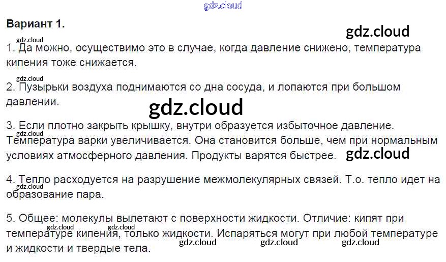 СР №15. Кипение Ответы к самостоятельным работам по Физике 8 класс Контрольные и самостоятельные работы Громцева УМК Экзамен