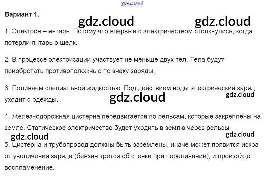СР №22. Электризация тел при соприкосновении Ответы к самостоятельным работам по Физике 8 класс Контрольные и самостоятельные работы Громцева УМК Экзамен