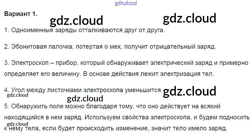 СР №23. Взаимодействие заряженных тел. Электроскоп. Электрическое поле Ответы к самостоятельным работам по Физике 8 класс Контрольные и самостоятельные работы Громцева УМК Экзамен