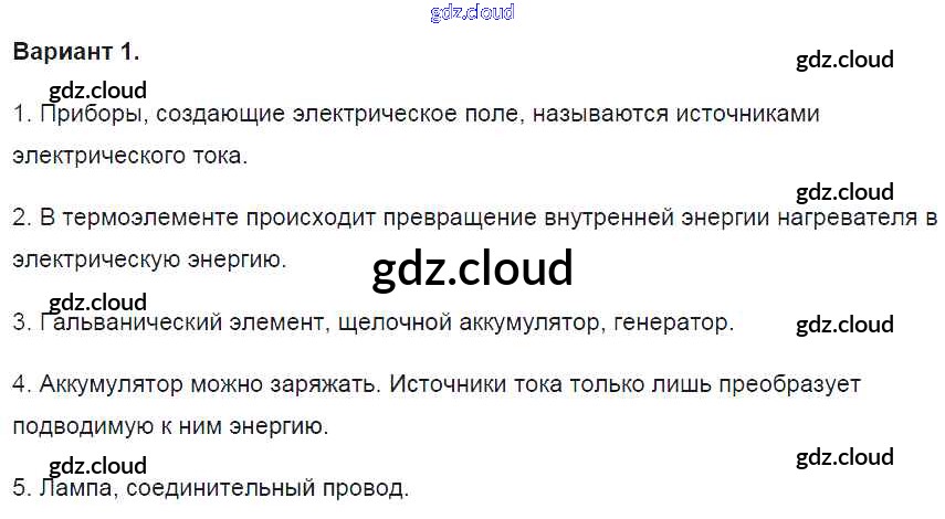 СР №28. Электрический ток Ответы к самостоятельным работам по Физике 8 класс Контрольные и самостоятельные работы Громцева УМК Экзамен