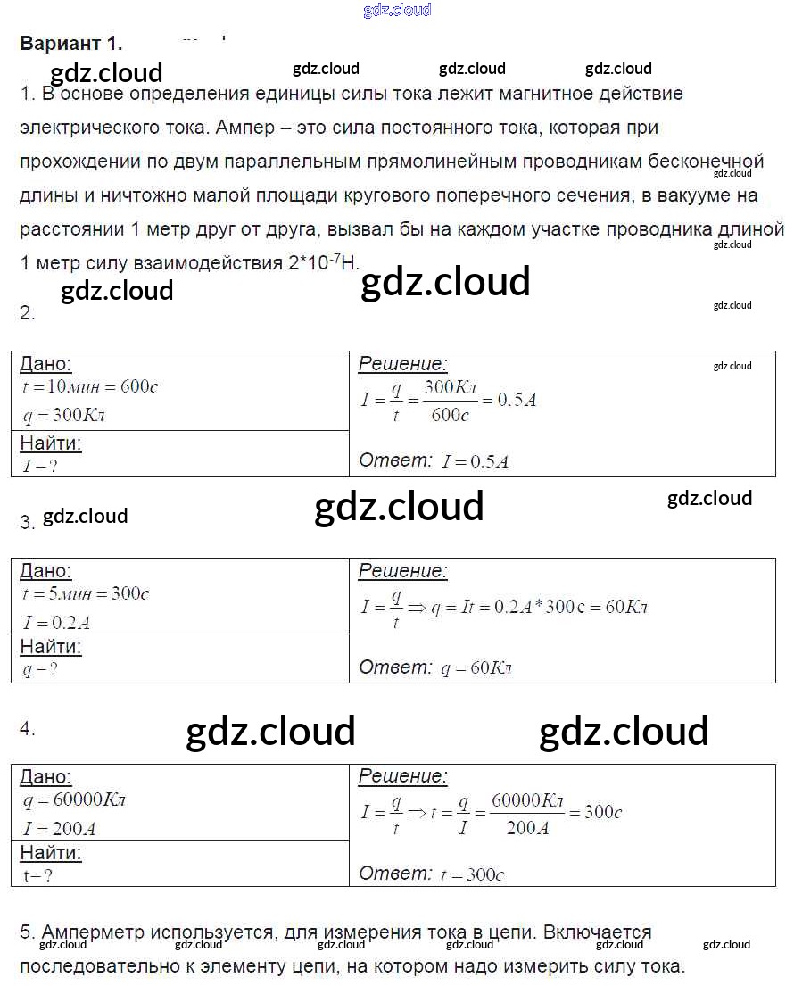 СР №30. Сила тока. Единицы силы тока. Амперметр. Измерение силы тока Ответы к самостоятельным работам по Физике 8 класс Контрольные и самостоятельные работы Громцева УМК Экзамен