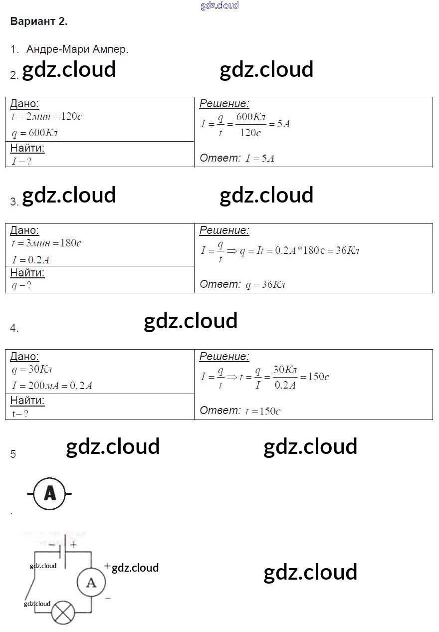 Ответ на задание вариант-2 Контрольные и самостоятельные работы Физика за 8 (восьмой) класс Громцева УМК 2017
