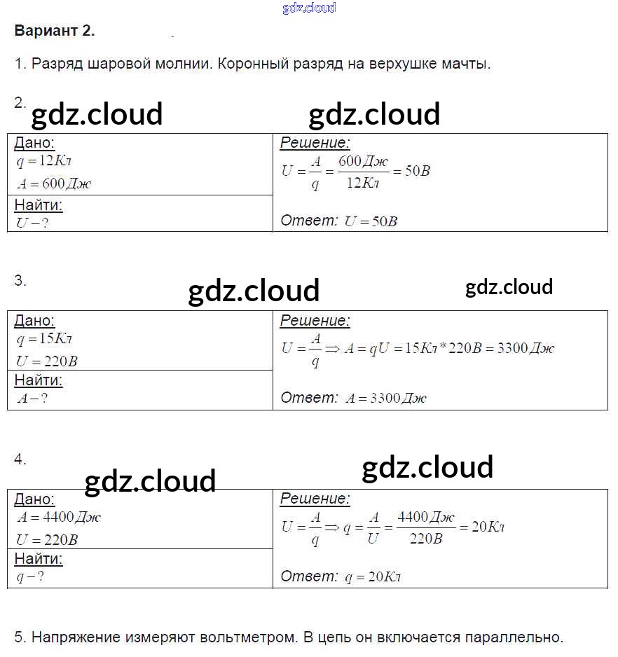 СР №31. Электрическое напряжение. Единицы напряжения. Вольтметр. Измерение силы тока Ответы к самостоятельным работам по Физике 8 класс Контрольные и самостоятельные работы Громцева УМК Экзамен