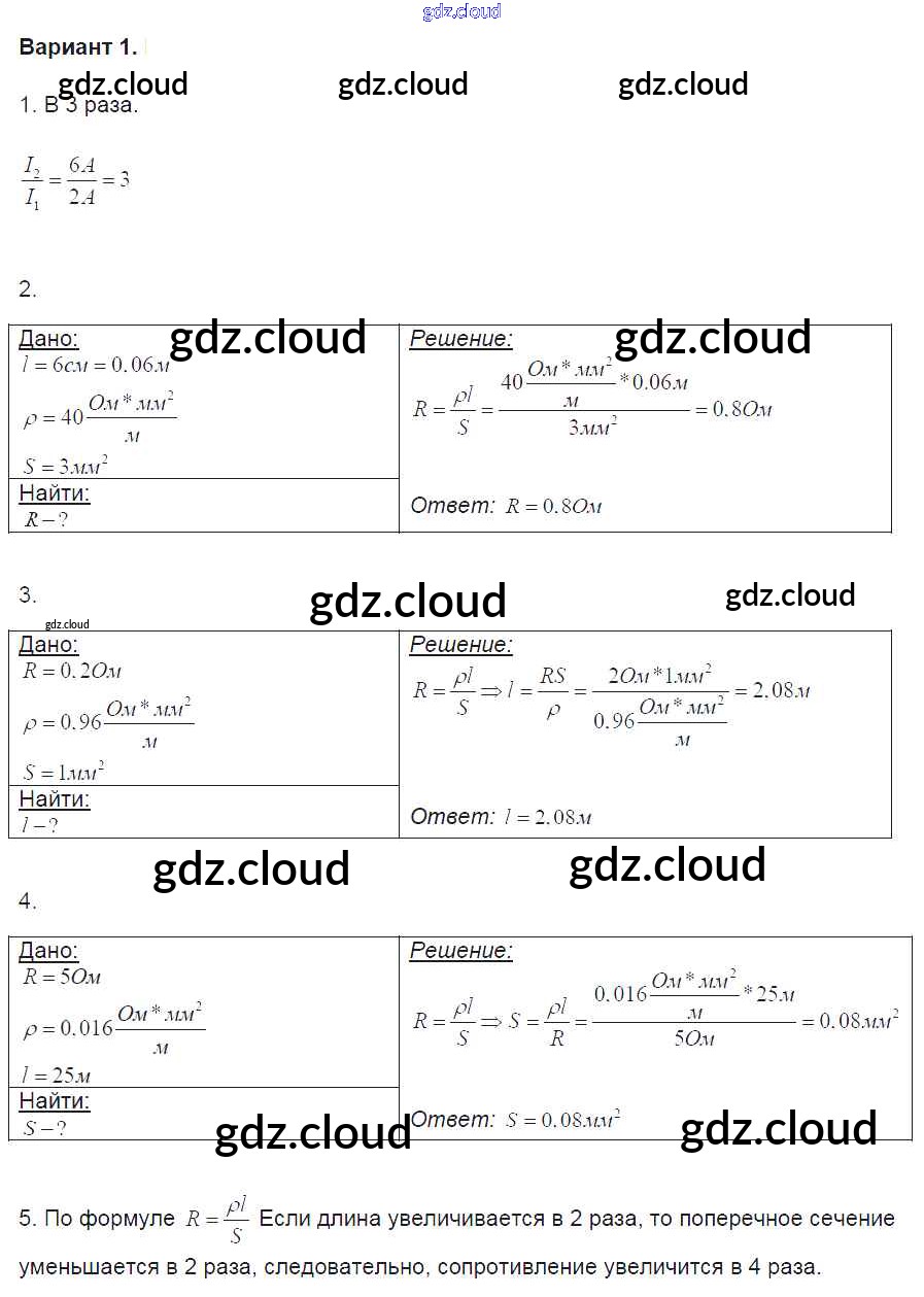 Ответ на задание вариант-1 Контрольные и самостоятельные работы Физика за 8 (восьмой) класс Громцева УМК 2017