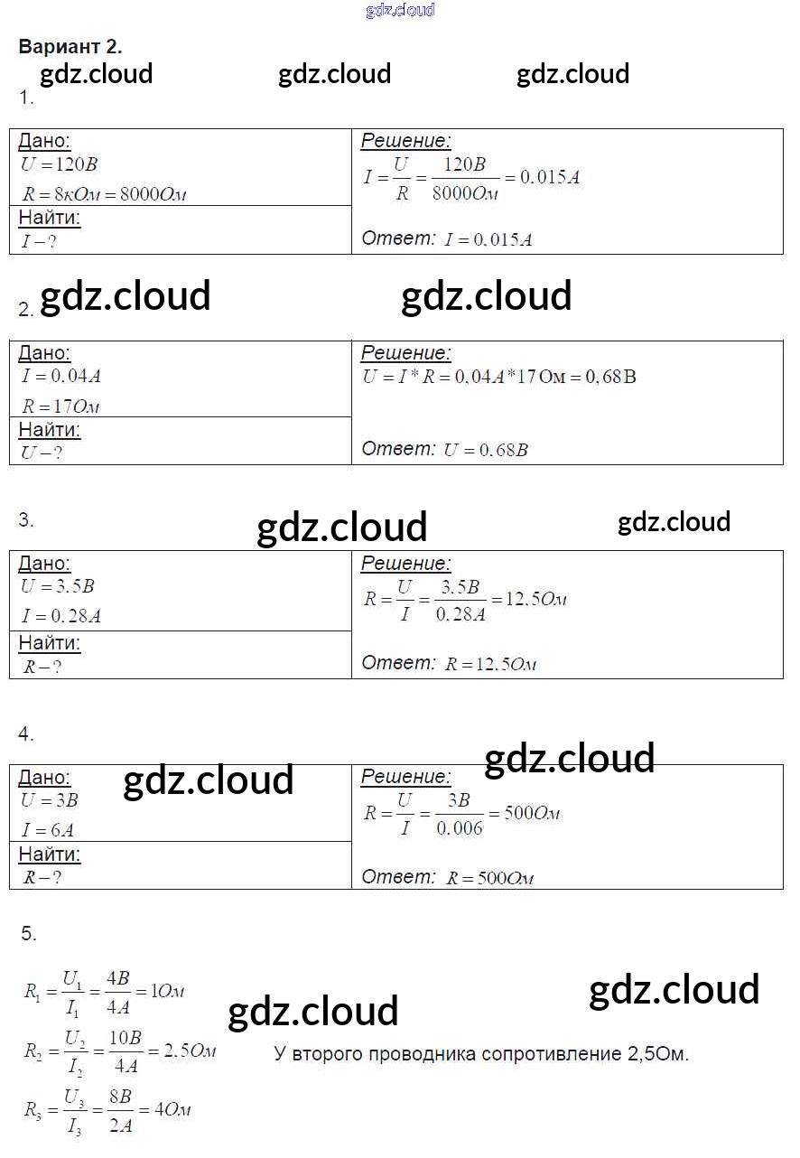 Ответ на задание вариант-2 Контрольные и самостоятельные работы Физика за 8 (восьмой) класс Громцева УМК 2017