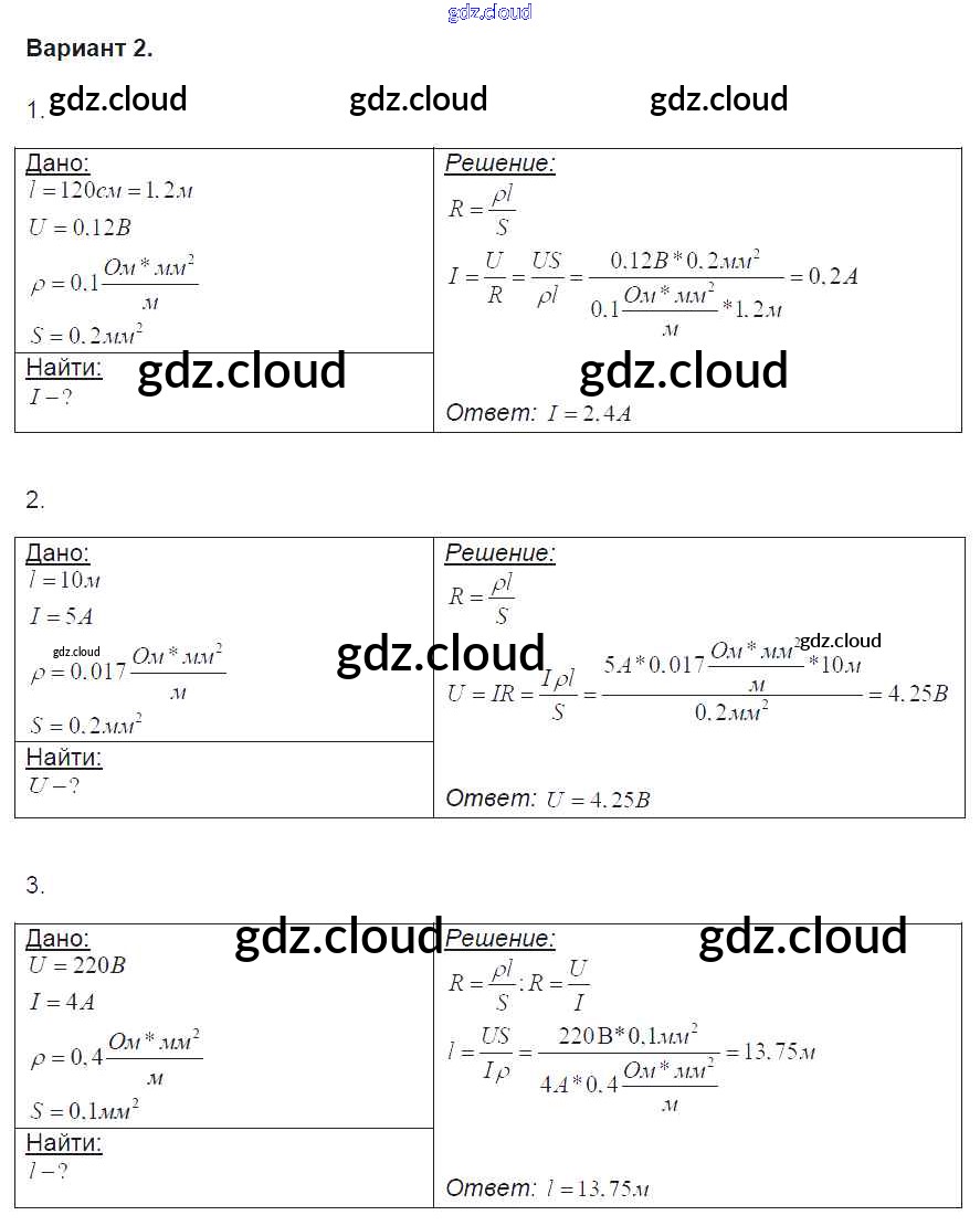 СР №34. Примеры на расчет сопротивления проводник, силы тока и напряжения. Реостаты Ответы к самостоятельным работам по Физике 8 класс Контрольные и самостоятельные работы Громцева УМК Экзамен