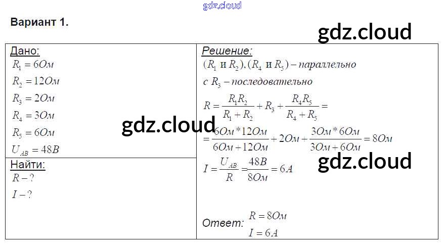 СР №35. Последовательное и параллельное соединение проводников. Расчет полного сопротивления и силы тока в цепи Ответы к самостоятельным работам по Физике 8 класс Контрольные и самостоятельные работы Громцева УМК Экзамен