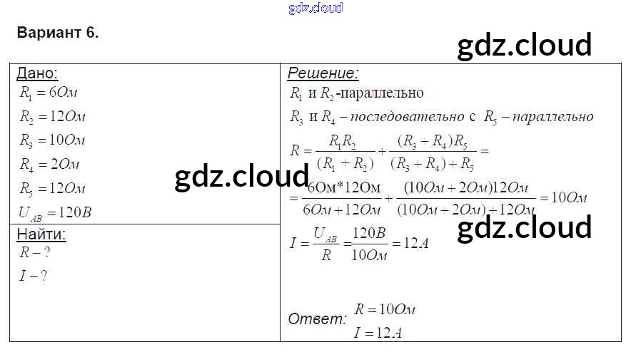 СР №35. Последовательное и параллельное соединение проводников. Расчет полного сопротивления и силы тока в цепи Ответы к самостоятельным работам по Физике 8 класс Контрольные и самостоятельные работы Громцева УМК Экзамен