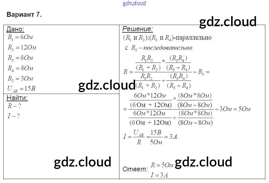 Ответ на задание вариант-7 Контрольные и самостоятельные работы Физика за 8 (восьмой) класс Громцева УМК 2017