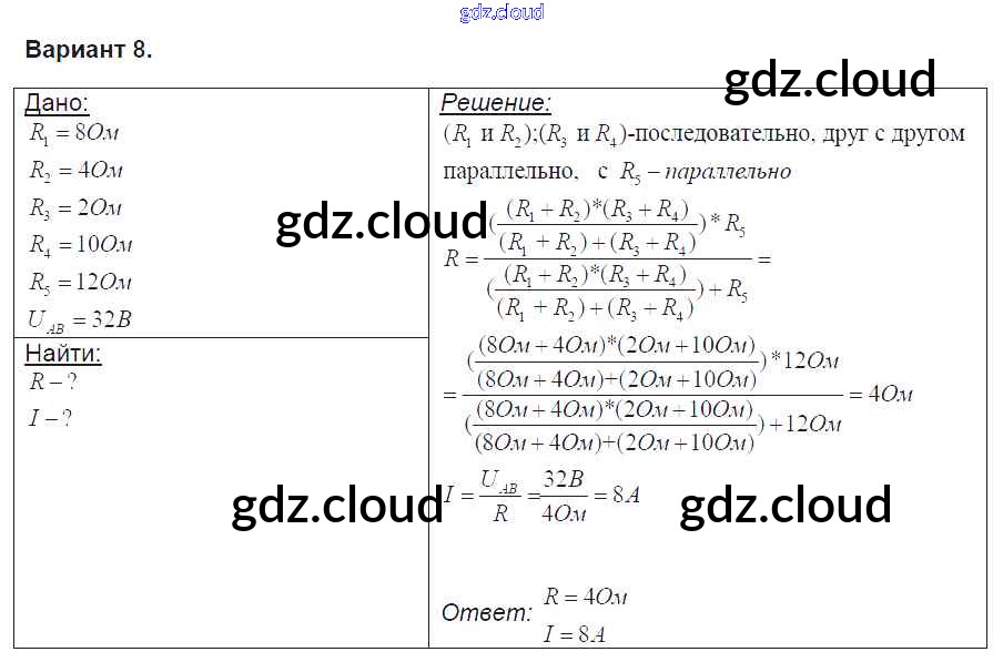 Ответ на задание вариант-8 Контрольные и самостоятельные работы Физика за 8 (восьмой) класс Громцева УМК 2017