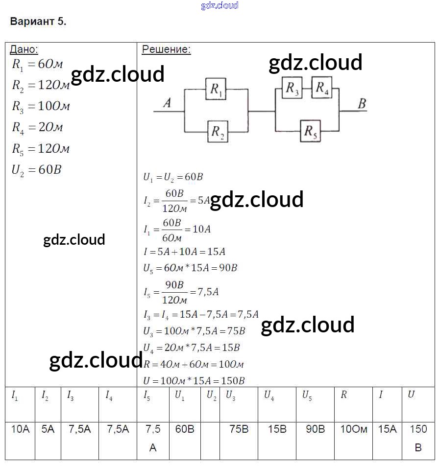 Ответ на задание вариант-5 Контрольные и самостоятельные работы Физика за 8 (восьмой) класс Громцева УМК 2017