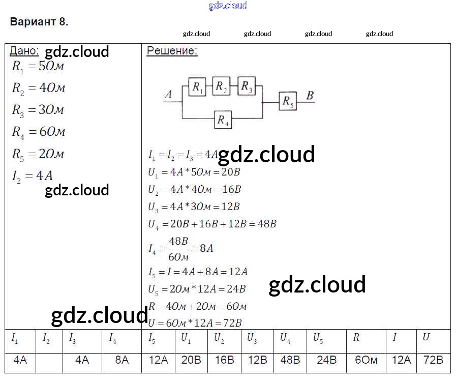 Ответ на задание вариант-8 Контрольные и самостоятельные работы Физика за 8 (восьмой) класс Громцева УМК 2017