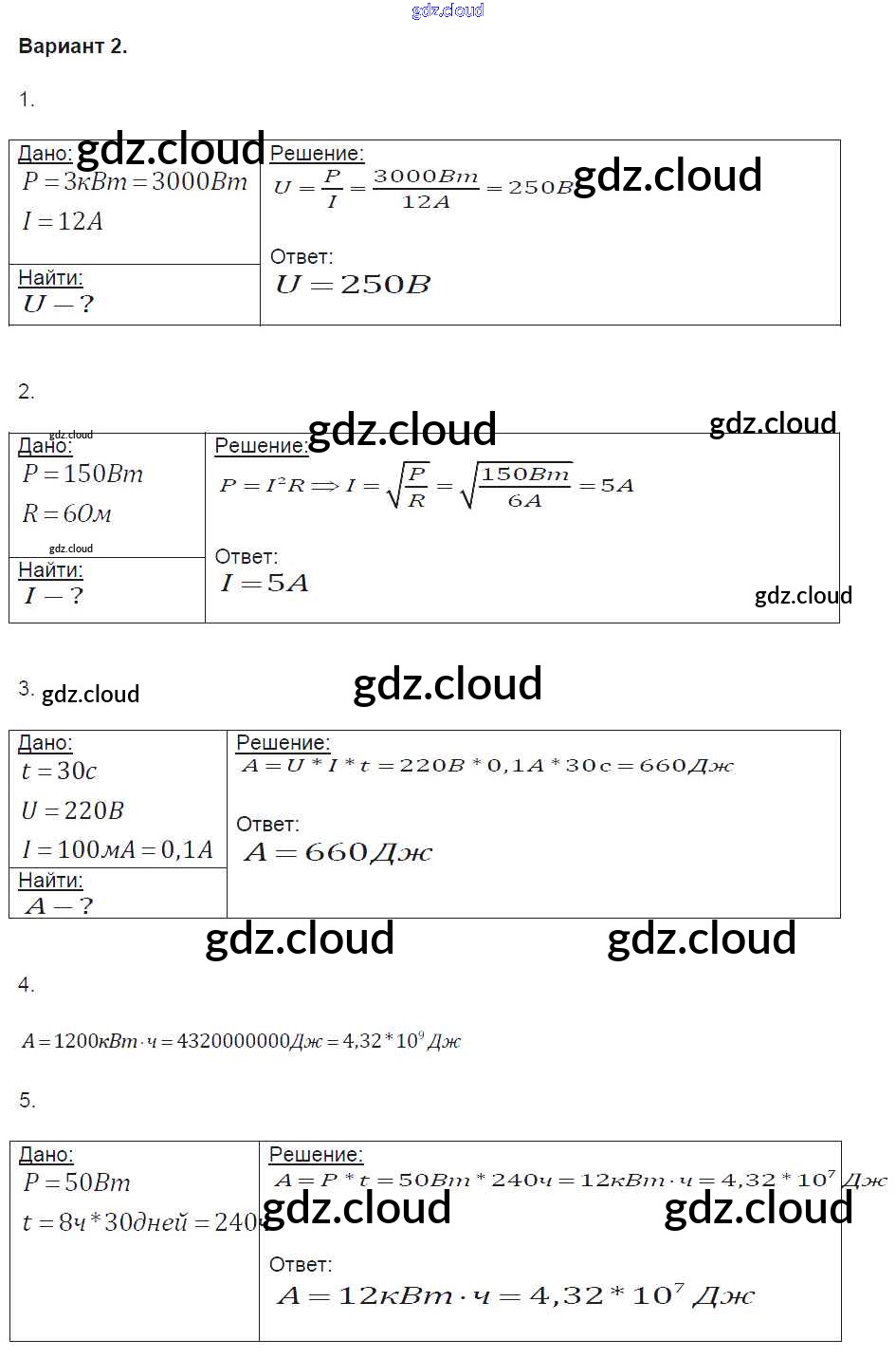 СР №37. Работа и мощность электрического тока Ответы к самостоятельным работам по Физике 8 класс Контрольные и самостоятельные работы Громцева УМК Экзамен