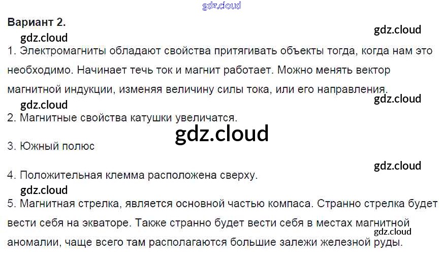 Ответ на задание вариант-2 Контрольные и самостоятельные работы Физика за 8 (восьмой) класс Громцева УМК 2017