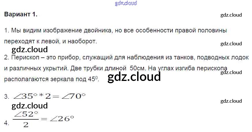 СР №46. Отражение света. Законы отражения. Плоское зеркало Ответы к самостоятельным работам по Физике 8 класс Контрольные и самостоятельные работы Громцева УМК Экзамен