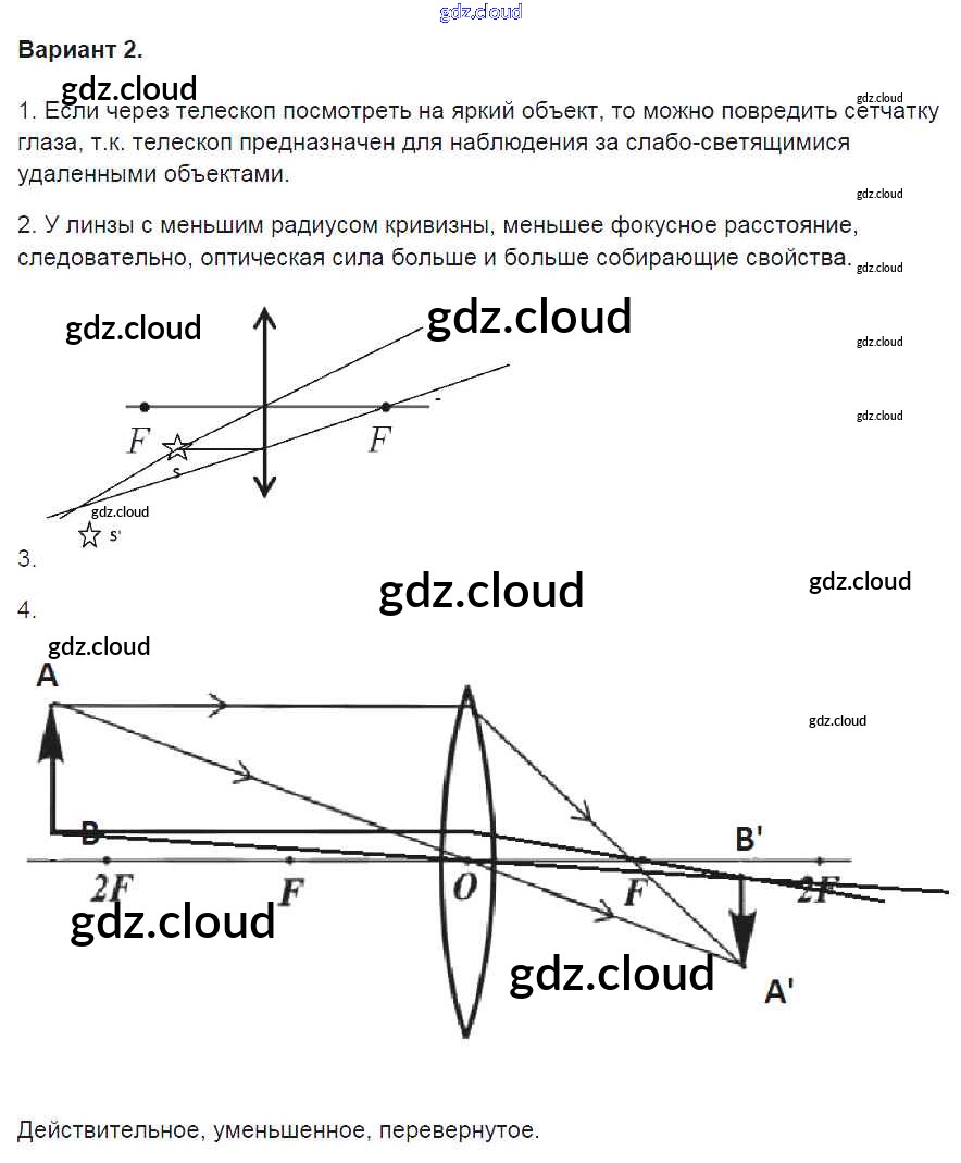 СР №48. Линзы. Оптическая сила линзы. Глаз и зрение Ответы к самостоятельным работам по Физике 8 класс Контрольные и самостоятельные работы Громцева УМК Экзамен