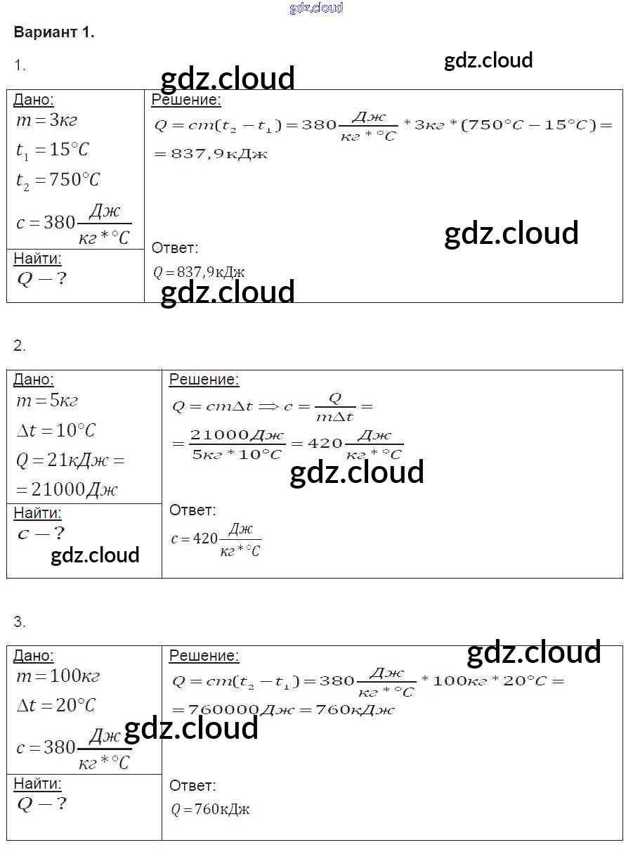 Ответ на задание вариант-1 Контрольные и самостоятельные работы Физика за 8 (восьмой) класс Громцева УМК 2017